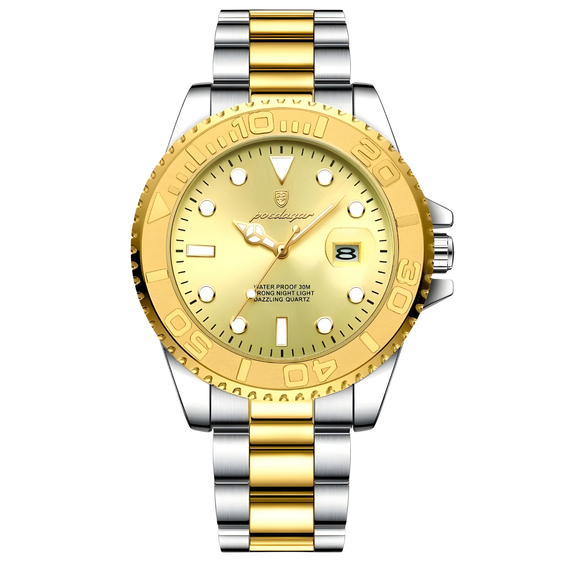 The Poedagar Thalios is meticulously crafted from high-quality stainless steel, ensuring both strength and longevity. The case and bracelet are engineered for resilience, polished to perfection for a sleek yet commanding presence on the wrist. Its scratch-resistant Hardlex crystal preserves the pristine beauty of the dial, offering clarity and protection against everyday wear.