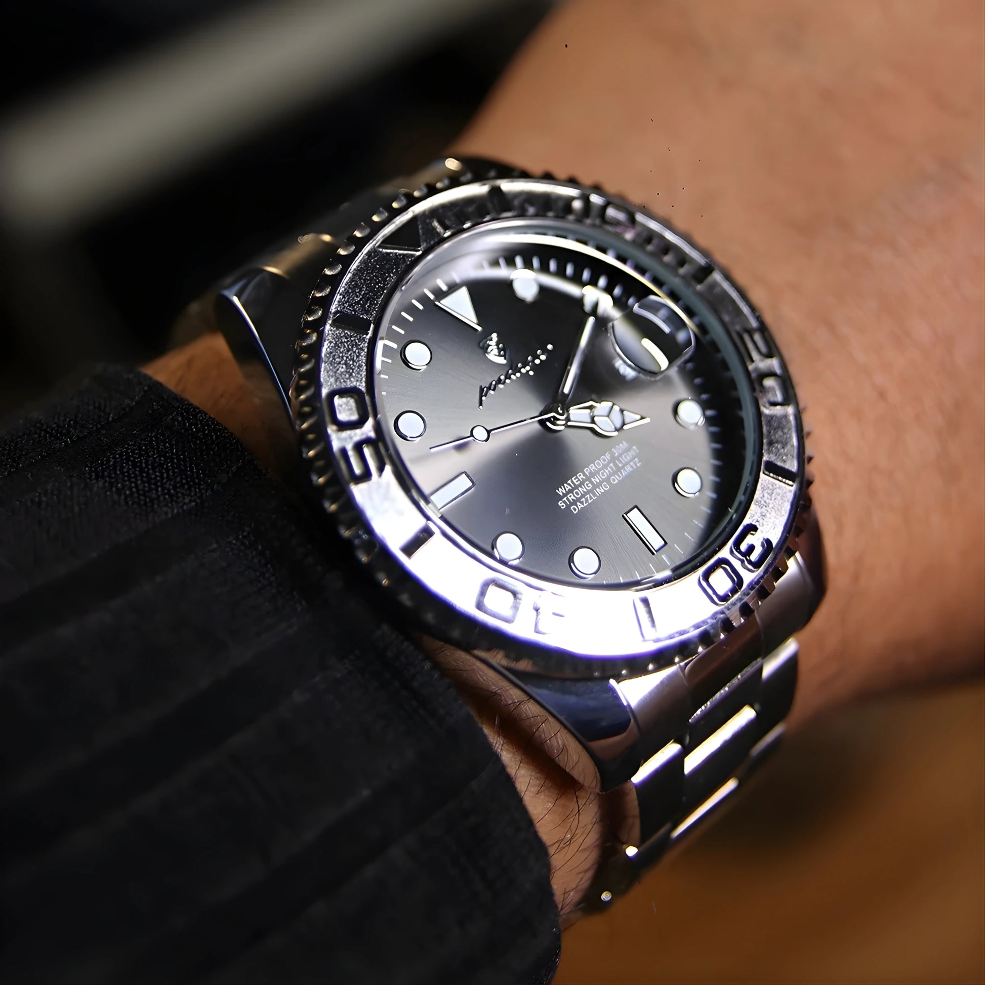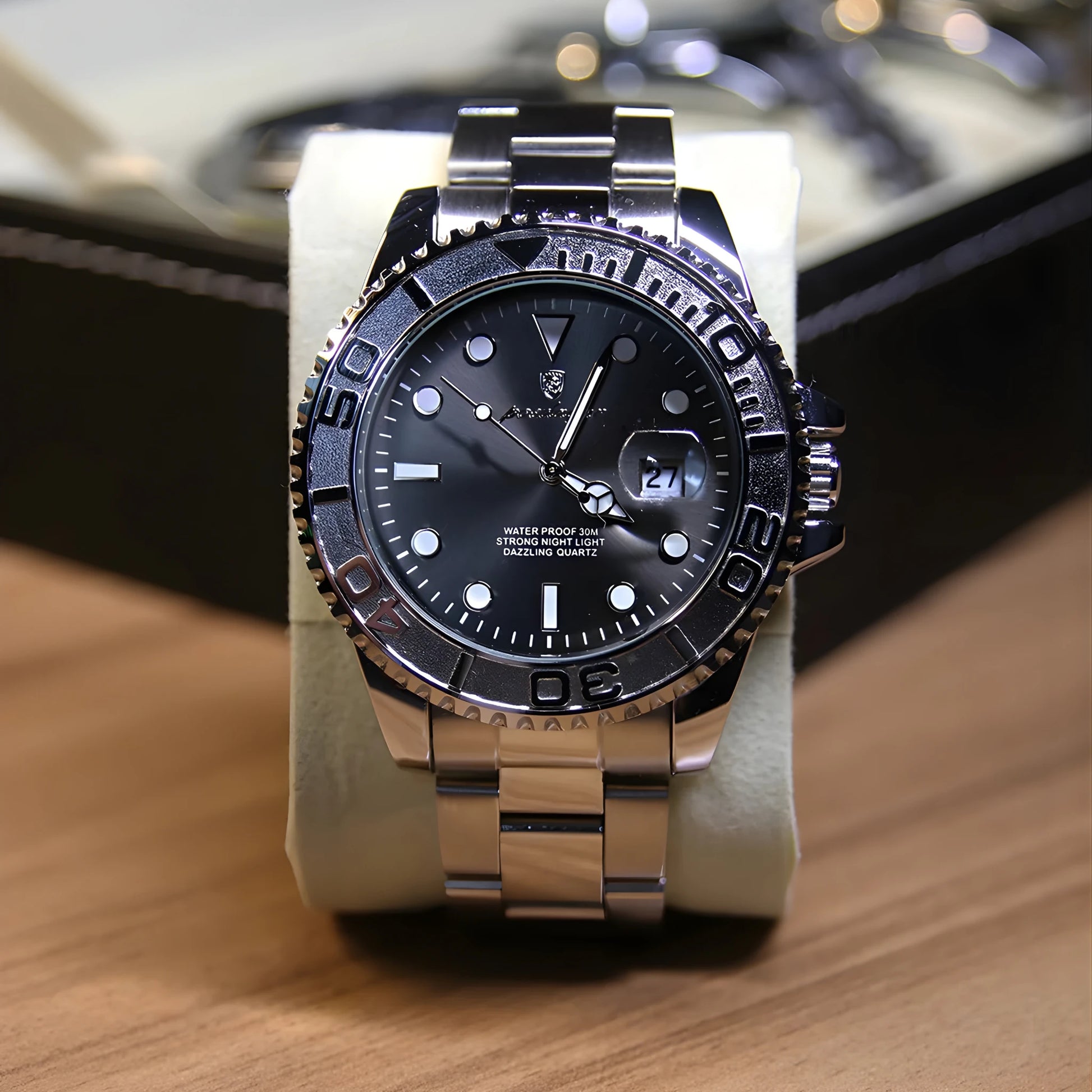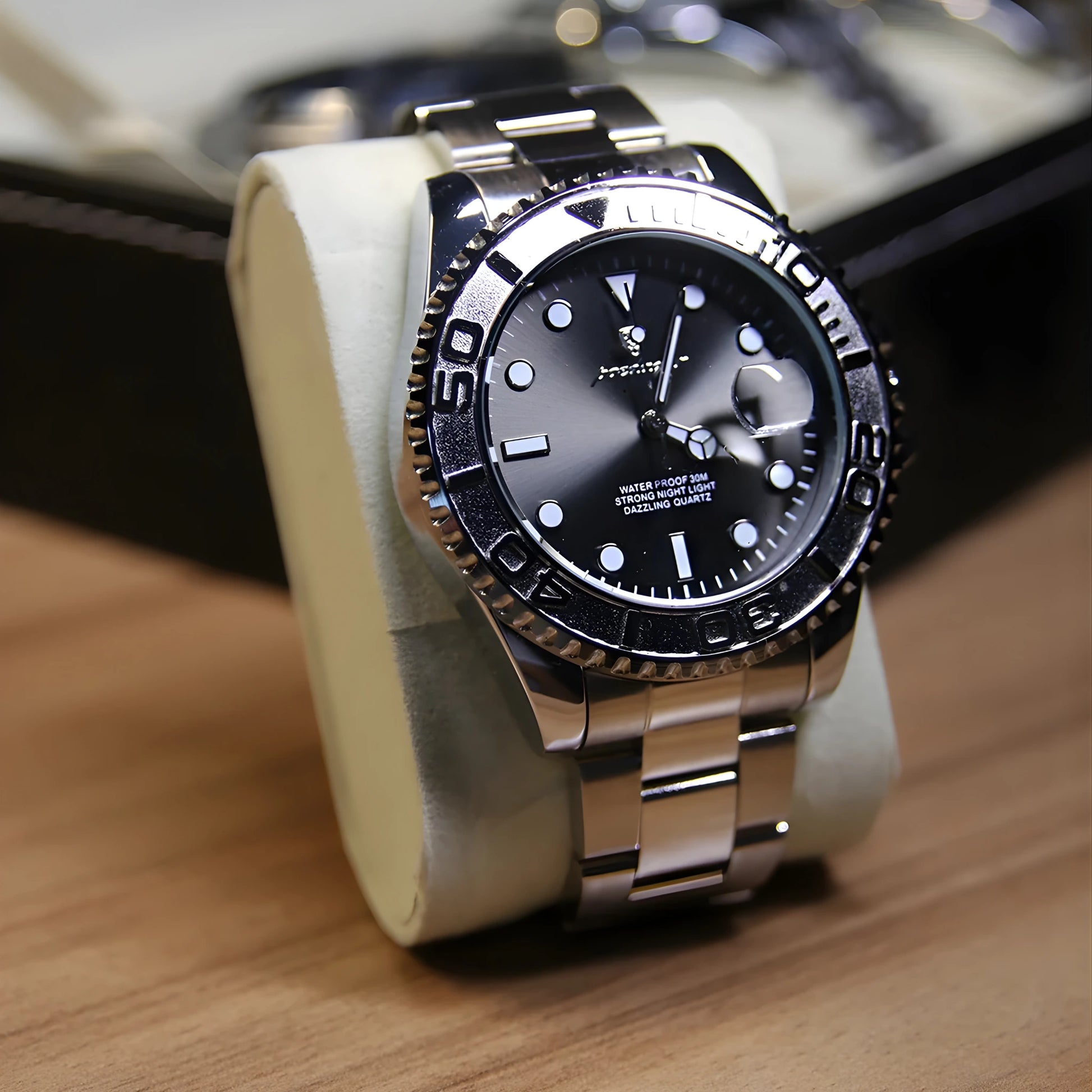 Features: Rotating Bezel, Luminous Display, Auto Date, Complete Calendar, Water Resistance (3ATM)